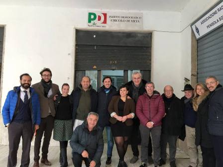 A meno di un mese dalle primarie campane il Partito Democratico di Meta ricomincia a sperare in una tregua casalinga. Segnali positivi dopo il nuovo tesseramento tenutosi nel comune costiero il 24 gennaio scorso. Giornata intensa quella di sabato, con entusiasmo rinnovato negli ambienti democratici cittadini in seguito alle guerre fratricide post-amministrative. Un momento importante verso la riapertura del dialogo tra i due principali contendenti dell'ultimo periodo, il sindaco Giuseppe Tito ed il suo predecessore Paolo Trapani. È stato proprio quest'ultimo a lanciare il nuovo tesseramento, accogliendo in paese i vertici provinciali PD - con Venanzio Carpentieri e Gianfranco Wurzburger - insieme all'on. Antonio Amato e all'eurodeputato Nicola Caputo.