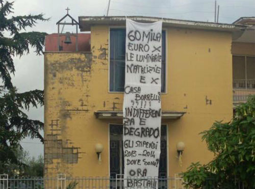 E’ la storia di un disagio che dura da tempo. A viverlo sono i quattordici dipendenti della casa di riposo comunale “Carmine Borrelli” di via Lepanto. La gestione della struttura è stretta nella morsa dei debiti. Alcune fonti riferiscono che ci sarebbero circa 400 euro al giorno di passività. L’ospizio è sull’orlo del fallimento. La questione è finita al centro del dibattito politico in più occasioni. C’è chi sostiene che bisogna procedere ad una esternalizzazione della struttura, affidandone la gestione ai privati e chi, invece, ritiene che debba essere fatto di tutto affinché resti al comune. Nel mezzo ci sono però i dipendenti che, nella mattinata del 20 novembre scorso, hanno appeso striscioni, dai contenuti molto eloquenti, sulla facciata dello stabile. “Sessanta mila euro per le luminarie natalizie e per la casa Borrelli indifferenza e degrado. Gli stipendi 2013-2014 dove sono? Ora basta!”. Questo è quanto si legge in uno degli striscioni forse più significativi per comprendere la complessità della situazione. I dipendenti, senza mezze misure, dicono di essere ancora in attesa di incassare mensilità arretrate (biennio 2013-2014). Una delegazione dei lavoratori ha incontrato recentemente l’assessore Santa Cascone e il sindaco Ferdinando Uliano per fare il punto della situazione, che è certamente molto complicata.