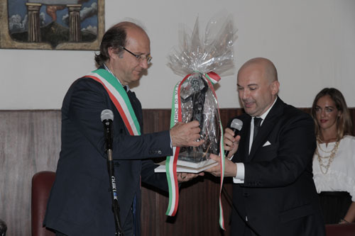 A parlare è Cosimo Maiorano, neo sindaco di Latiano, ricevuto oggi in visita presso Palazzo De Fusco. Il sindaco di Latiano, città che diede i natali al Beato Bartolo Longo, gemellata con Pompei dall’85, è stato ricevuto nell’aula consiliare assieme ad una delegazione della comunità religiosa. Dopo un cortese scambio di doni i due sindaci si sono uniti alla solenne processione che ha visto sfilare, lungo le vie cittadine, l’urna contenente le reliquie del Beato Bartolo Longo.