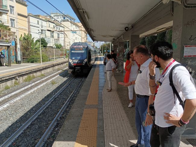 Due ore e un quarto. Centotrentacinque minuti per recarsi da Torre del Greco a Castellammare di Stabia, prende un caffè in un bar nei pressi della stazione e ritornare lì dove tutto era iniziato. Tanto ci ha messo questa mattina, giovedì 6 luglio, il sindaco di Torre del Greco, Luigi Mennella, che ha deciso di “sperimentare sul campo” il nuovo piano di servizio delle linee vesuviane, come del resto aveva annunciato la settimana scorsa al termine di un confronto da remoto con il presidente dell’Ente Autonomo Volturno Umberto De Gregorio. Insieme a lui, tra gli altri, l’assessore ai Trasporti sostenibili della città Laura Vitiello e il vicepresidente di Federalberghi Costa del Vesuvio Corrado Sorbo.