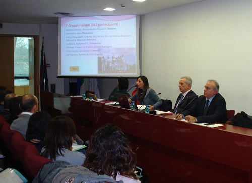 Si è svolto a Roma, presso la Sala "Auditorium" del Palazzo delle Federazioni Sportive di Viale Tiziano, il Simposio nazionale, congiunto alla riunione con i Direttori Tecnici ed i Referenti di Giuria di tutte le regioni italiane, della Sezione Ginnastica per Tutti della Federazione Ginnastica d'Italia. A presiedere i lavori è stato il Vice Presidente nazionale prof. Rosario Pitton, su delega del Presidente Federale prof. Riccardo Agabio, che ha aperto il Simposio ricordando il positivo bilancio delle attività di G.p.T. del 2014 ed il felice inizio del 2015 con il "Winter GymCampus" di Castellamare di Stabia, che ha fatto registrare un'adesione largamente superiore alle aspettative e la piena soddisfazione dei partecipanti alle attività addestrative e formative. Il dirigente partenopeo ha sottolineato poi che, oltre alla Gymnaestrada Mondiale di Helsinki, alla kermesse Ginnastica in Festa di Pesaro, alla Ginnastica Acrobatica e all'attività con la Scuola, novità assolute del 2015 saranno la formazione della Sezione G.p.T., con l'istituzione della qualifica di "Esperto in attività motorie e formazione giovanile" che si conseguirà attraverso un percorso formativo biennale, e l'esordio della sezione G.p.T. nell'edizione 2015 del Trofeo CONI, chiamata a sostituire le 3 sezioni olimpiche secondo gli auspici del Comitato Olimpico Nazionale. Dopo un breve intervento del Consigliere nazionale Fabio Gaggioli, è stata poi la volta della Direttrice Tecnica Nazionale/GpT Emilana Polini (nella foto al centro accanto a Pitton) assistita dal Collaboratore Nazionale GpT Pietro Natalicchio. La tecnica di Gragnano (NA), dopo aver fatto un breve excursus sul 2014, ha proiettato lo sguardo verso la prossima attività internazionale, la World Gymnaestrada finlandese, alla quale l'Italia parteciperà con 17 gruppi per complessivi 362 ginnasti con 2 gruppi campani coordinati da Valeria Ciancio, della società La Roccia Napoli, e Rosaria Bruno, del Kodokan Atena Lucana (SA), entrambe presenti al simposio per gli incarichi detenuti in seno al Comitato Regionale F.G.I. Campania. Non sono mancate le domande ai relatori che hanno trovato puntuali ed esaustive risposte dal tavolo, a conferma della validità dei nostri rappresentanti nell'organigramma nazionale federale.