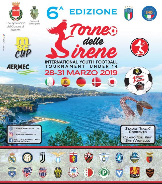 Sei...bellissimo, caro Torneo delle Sirene - MSC Cup. Ci si vede in Costiera, dal 28 al 31 marzo, per il trofeo riservato alla categoria Giovanissimi 2005 (Under 14), che rappresenta un punto fermo della programmazione primaverile delle grandi società italiane ed internazionali. Un appuntamento giunto ormai alla sesta edizione, probabilmente la più intrigante di sempre in virtù delle formazioni che si daranno battaglia sui campi in erba sintetica di Sorrento e Sant'Agnello. Già perché a fare da cornice alla manifestazione sarà, come di consueto, lo scenario meraviglioso della penisola sorrentina, con i suoi squarci unici. Sarà una quattro giorni intensa vissuta “qui dove il mare luccica e tira forte il vento” per dirla alla Lucio Dalla, grazie anche al patrocinio del Comune di Sorrento "capitanato", è proprio il caso di dirlo, dal sindaco Giuseppe Cuomo. Il comitato organizzatore, composto dal presidente Raffaele Ruggiero e dall’ex calciatore del Sorrento Giuseppe Incarnato- con la collaborazione dell'Accademia Calcio Sorrento - ha preparato un menù davvero ricco per stupire gli addetti ai lavori che affolleranno le tribune insieme ai tanti appassionati che seguono con interesse il Torneo delle Sirene - MSC Cup