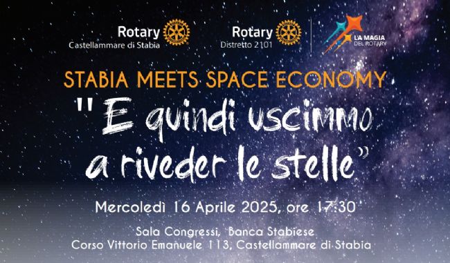La Sala Congressi della Banca Stabiese ospiterà mercoledì prossimo, 16 aprile, dalle ore 17.30, l’incontro "#Stabia meets Space Economy", un evento emozionante per tutti gli appassionati e per coloro che desiderano scoprire le ultime novità del mondo spaziale. L'evento vedrà la partecipazione di ospiti d'eccezione, pronti a condividere con la platea la loro esperienza e la loro visione sul futuro dell'esplorazione spaziale. L'astrofisica Mariafelicia De Laurentis, il giovane imprenditore Mattia Barbarossa, Presidente e Founder della Sidereus Space Dynamics, il Presidente del Distretto Aerospaziale della Campania, Luigi Carrino, ed il Responsabile dell’Ingegneria dei Sistemi del Gruppo Space Factory, Antonio Evangelista, saranno coinvolti in un dialogo avvincente e interattivo, durante il quale condivideranno le ultime novità del mondo spaziale e risponderanno alle domande della platea. L’incontro è preceduto da un video della scienziata Amalia Ercoli Finzi, prima donna italiana laureata in ingegneria aerospaziale. Al termine dell’incontro saranno consegnati delle targhe di riconoscimento a personalità Stabiesi, offerte dal Gruppo Space Factory, per le attività di promozione e disseminazione della cultura dell’Innovazione: Antonella Capasso, Presidente del Garden Club Stabiae, per l’attività di promozione della cultura e dell’innovazione con le scuole medie superiori; Elena Cavaliere, Dirigente del Liceo scientifico Francesco Severi, per l’organizzazione dello Space Village e per la creazione del primo Young Space Hub; Michele Cioffi, Responsabile Ricerca&Innovazione del Gruppo Space; Marilena Filosa De Rosa, Past President Garden Club Stabiae, per aver avviato l’attività di sensibilizzazione sul territorio alla cultura spaziale; Antonio Salza, già Responsabile Alenia Spazio Napoli, per il contributo alla crescita delle attività spaziali in Campania. L'evento rappresenta un'occasione unica per scoprire le meraviglie dello Spazio, con la presenza di esperti di spicco del settore. L’iniziativa è stata organizzata dal Rotary Castellammare di Stabia – Distretto 2101 in collaborazione con il Distretto Aerospaziale della Campania, il Gruppo Space Factory, l’associazione Garden Club Stabiae e la Rete di Scopo Space Village.
