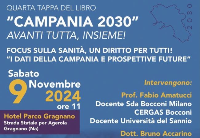 Importante iniziativa per parlare di Sanità in Campania. Sabato 9 novembre alle ore 11 presso Hotel Parco a Gragnano in anteprima i dati della sanità campana elaborati dal Cergas Bocconi Milano. Iniziativa organizzata dal Dott. Alfonso Longobardi Amministratore unico Sanì e Presidente dell’associazione Sviluppo e Territorio.