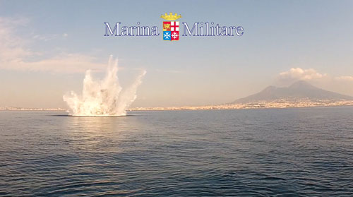 Questi oggetti, con le opportune precauzioni, sono stati radunati sott’acqua per essere poi trasportati, sempre sott’acqua e con l’ausilio di una motovedetta della Guardia Costiera di Napoli, a circa 2 miglia al largo del porto dove sono stati fatti brillare alle ore 13:26.