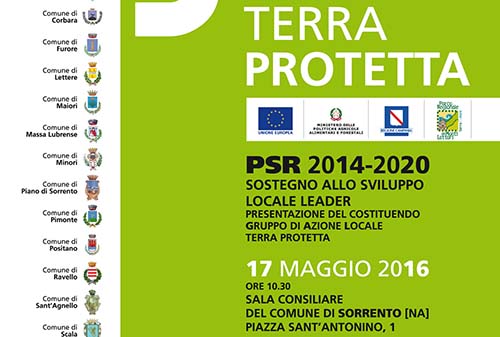 L’Ente Capofila Parco dei Monti Lattari, 22 Comuni, la Comunità Montana dei Monti Lattari e la Città Metropolitana di Napoli hanno sottoscritto un accordo di partenariato per costituirsi in Gruppo Promotore finalizzato all'avvio dell'iter di confronto istituzionale, con la cittadinanza e con tutti i portatori locali di interessi singoli e diffusi, per individuare la Strategia di Sviluppo Locale nell'ambito del costituendo GAL Terra Protetta.