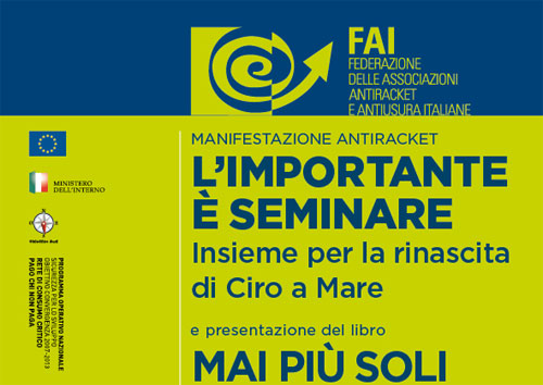 Lunedi 6 luglio a partire dalle 18, presso la Spiaggia delle Mortelle - Portici, nel piazzale antistante il ristorante Ciro a Mare, si svolgerà la Manifestazione antiracket dal titolo ‘L'importante è seminare' - Per la rinascita di Ciro a mare. L'iniziativa, promossa dall'Associazione FAI Antiracket Portici - G. Panunzio con la collaborazione della FAI - Federazione delle Associazioni Antiracket Italiane e con il patrocinio morle del comune di Portici, ha come obiettivo richiamare l'attenzione sulla vicenda del noto ristorante Ciro a Mare distrutto nella notte tra il 4 ed il 5 gennaio 2009 dalla camorra in un grave attentato incendiario.