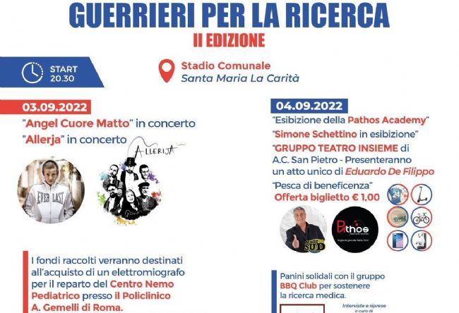 Tanti i momenti di aggregazione e le iniziative con il clou nei giorni 3 e 4 settembre 2022, dove si esibiranno sul palco - montato per l'occasione all'interno dello stadio comunale di Santa Maria La Carità (e non più come precedentemente annunciato in piazza Giovanni Paolo II) -, il gruppo musicale Allerija in concerto e il comico Simone Schettino.
