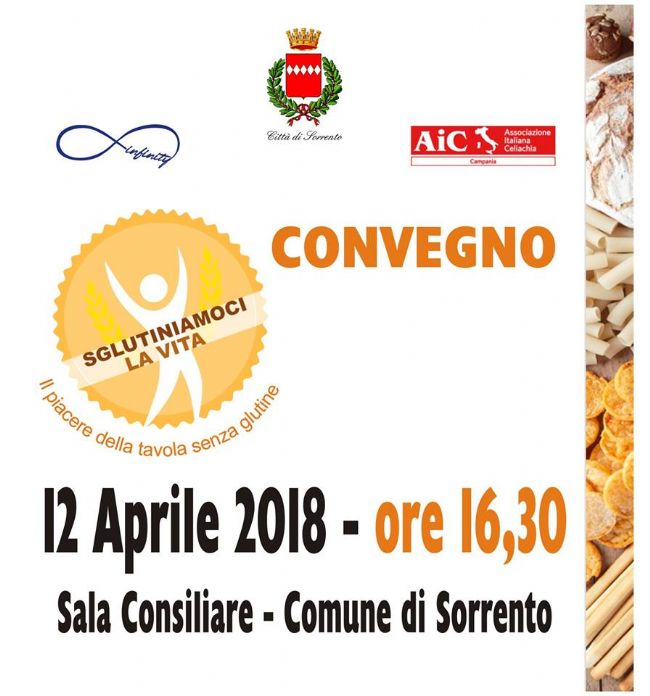 “Sglutiniamoci la Vita” è il tema di un interessante convegno che si terrà giovedì 12 aprile, alle ore 16:30, presso la Sala Consiliare del Comune di Sorrento. La celiachia sempre più sotto i riflettori, analizzata sotto molteplici sfaccettature perché coinvolge ormai un’altissima percentuale di persone.
