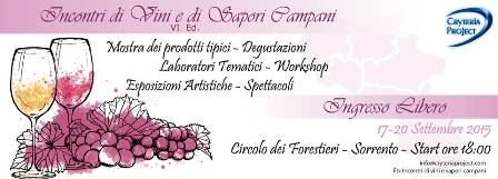 A fine estate, come ormai è consuetudine, Sorrento mette in vetrina le eccellenze enogastronomiche delle cinque province della Regione e lo fa attraverso la manifestazione “Incontri di Vini e di Sapori campani”, organizzata dall’Associazione Cryteria Project, che è giunta alla sua sesta edizione. Quest’anno gli espositori saranno accolti dal Circolo dei Forestieri, tappa obbligata per i viaggiatori in arrivo in Penisola e per chi abitualmente ha la fortuna di viverci. Un panorama mozzafiato e un'atmosfera glamour valorizzeranno i prodotti in mostra e le tante iniziative in programma. L’evento sarà inaugurato alla presenza del Sindaco della Città di Sorrento, Giuseppe Cuomo, giovedì 17 con la presentazione del romanzo “Giro di Vite” di Piero Mastroberardino e vedrà la partecipazione dell’autore e dello scrittore Lucio Rufolo; a moderare il giornalista Antonino Siniscalchi. Si continua venerdì con il laboratorio del gusto “I profumi e i sapori dell’Olio Extravergine di oliva DOP Colline Salernitane”, curato da Maria Provenza, assaggiatore capo panel e tecnico di qualità dell’azienda Torretta. A seguire il primo appuntamento della piccola rassegna cinematografica “Assaggi di cinema… bere mangiare raccontare per vivere” del Circolo Endas-Associnema, con la proiezione del film-documentario “Food Inc.” di Robert Kenner; rassegna che si chiuderà domenica 20 con la commedia “Amore, cucina e curry”, diretto da Lasse Hallström su una sceneggiatura di Steven Knight. Sabato si parte di buon mattino dalla Marina Piccola per un’escursione a bordo dello storico gozzo sorrentino “Pianosa” della Peninsula Navis, durante la quale verranno degustati i vini Feudi di San Gregorio e La Guardiense, in abbinamento a prodotti tipici locali.