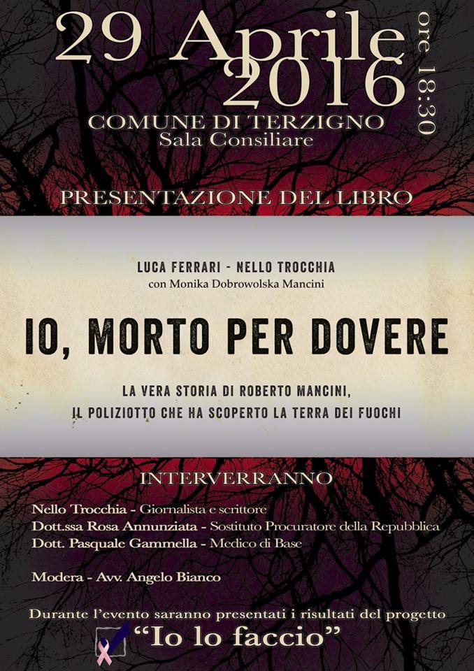Il libro ripercorre la vita del poliziotto Roberto Mancini,  il poliziotto che ha scoperto la terra dei fuochi e che già vent'anni fa conosceva nomi e trame di un sistema criminale composto da una cricca affaristica in combutta con la peggiore malavita organizzata e con le eminenze grigie della massoneria.