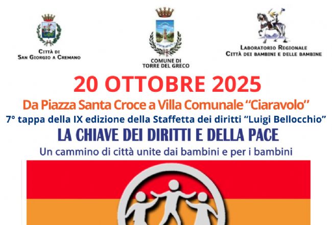 Per il secondo anno consecutivo, la città di Torre del Greco ospita una tappa della staffetta sui diritti “Luigi Bellocchio”, la manifestazione giunta alla nona edizione che vede coinvolti altri 22 comuni e viene realizzata in collaborazione con il laboratorio dei bambini e delle bambine di San Giorgio a Cremano.