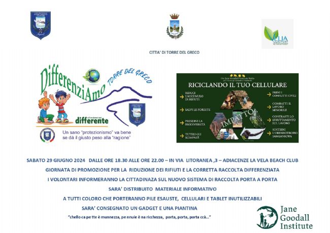 La manifestazione gode del patrocinio dell'amministrazione comunale e della collaborazione di Velia Ambiente (società che si occupa della raccolta dei rifiuti differenziati a Torre del Greco). Nella circostanza il Gav effettuerà una raccolta di cellulari e tablet inutilizzabili e anche di pile esauste, che saranno poi consegnati ad un'azienda specializzata per il corretto smaltimento. I volontari spiegano che ad ogni cittadino che porterà oggetti da riciclare sarà donato un gadget o una piantina (fino all'esaurimento delle scorte).