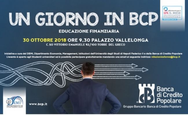 La Banca di Credito Popolare ed il Dipartimento di Economia, Management, Istituzioni dell'Università degli Studi di Napoli Federico II partecipa al Mese dell'Educazione Finanziaria, organizzato dal Mistero dell'Economia e delle Finanze, con un incontro tematico sul tema dell'istruttoria di fido come momento valoriale per l'impresa richiedente e per la banca concedente.