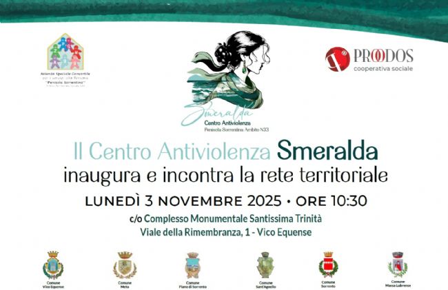 Un nuovo passo avanti nel percorso di prevenzione e contrasto alla violenza di genere. Lunedì 3 novembre, alle ore 10.30, sarà inaugurato a Vico Equense il nuovo Centro Antiviolenza “Smeralda”, intitolato alla memoria di Anna Scala, la donna vicana vittima di femminicidio.