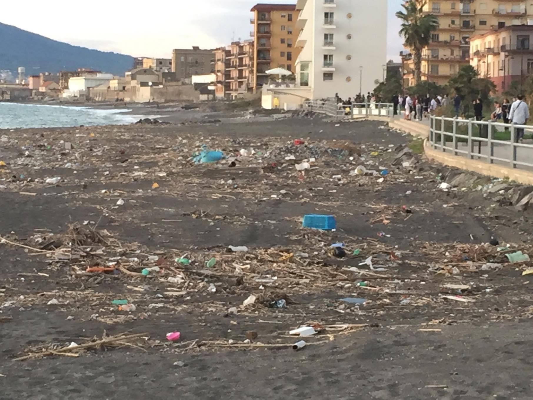 Dopo i temporali della scorsa settimana, la spiaggia non è stata ripulita. Pessimo spettacolo per i turisti e per i semplici stabiesi che passeggiano ogni giorni in villa comunale.