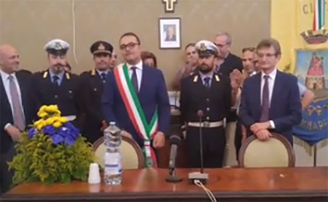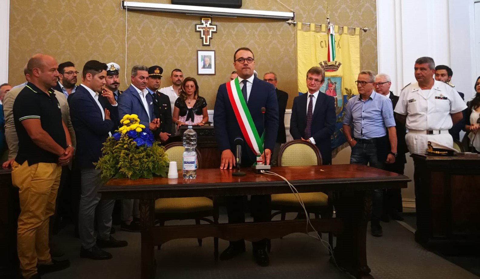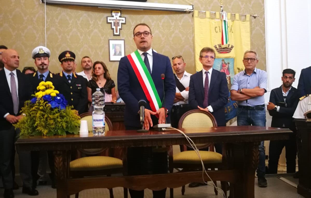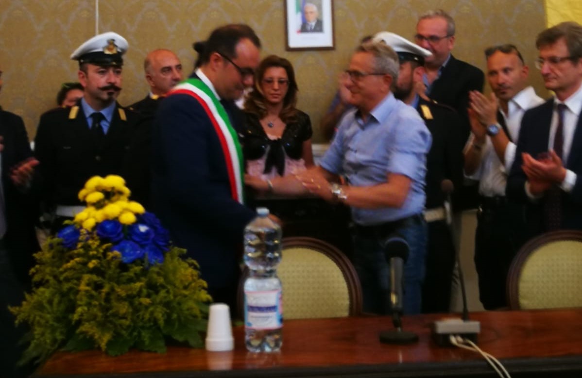 Fascia tricolore per il neo sindaco Gaetano Cimmino. «Ora avanti col programma».