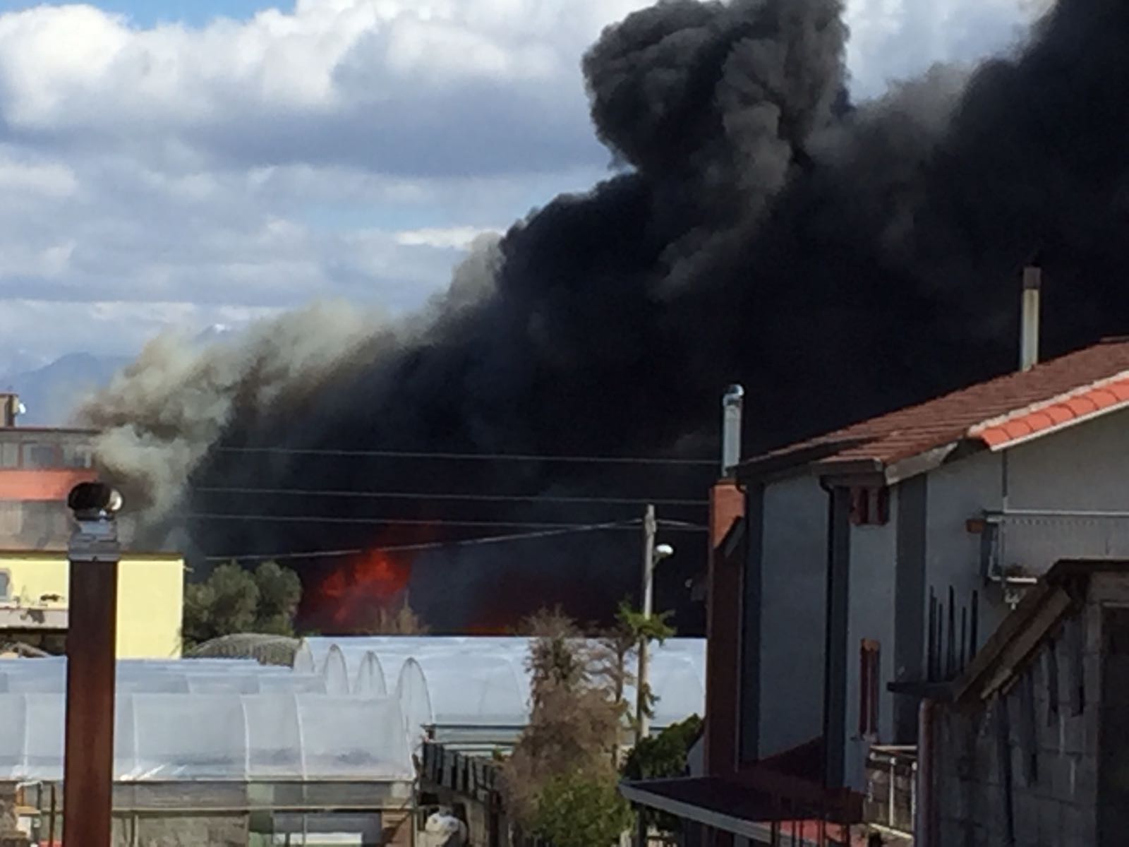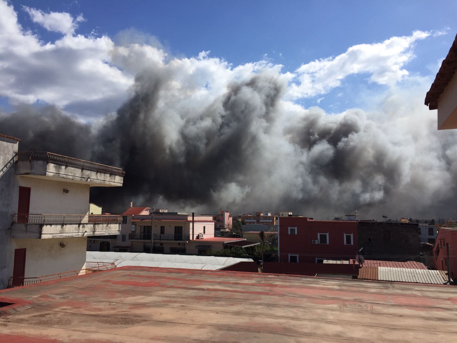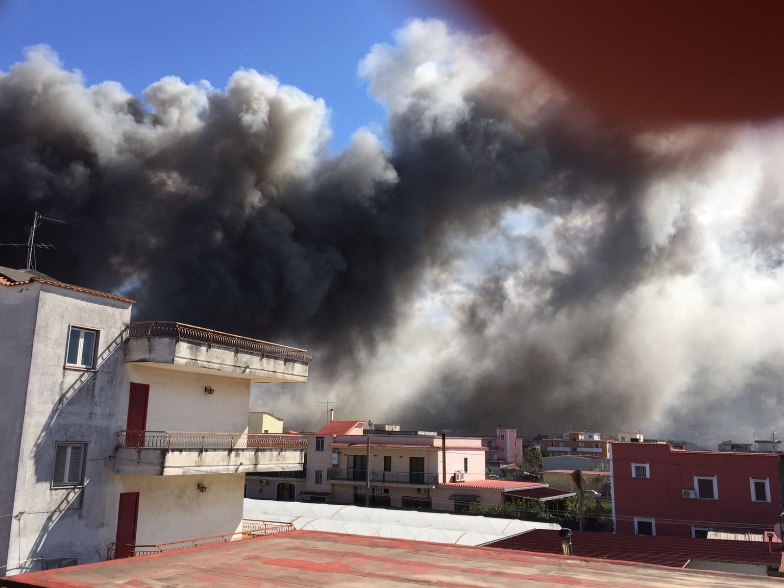 La colonna di fumo nero è visibile persino da Pompei e Torre Annunziata.