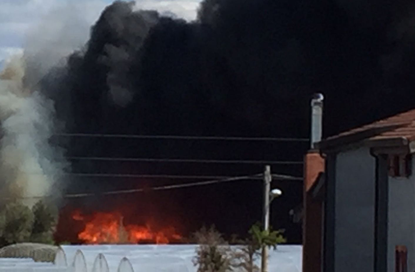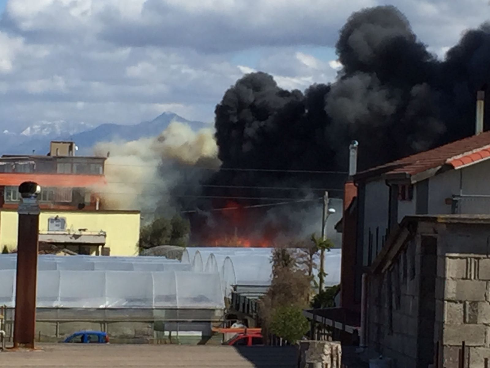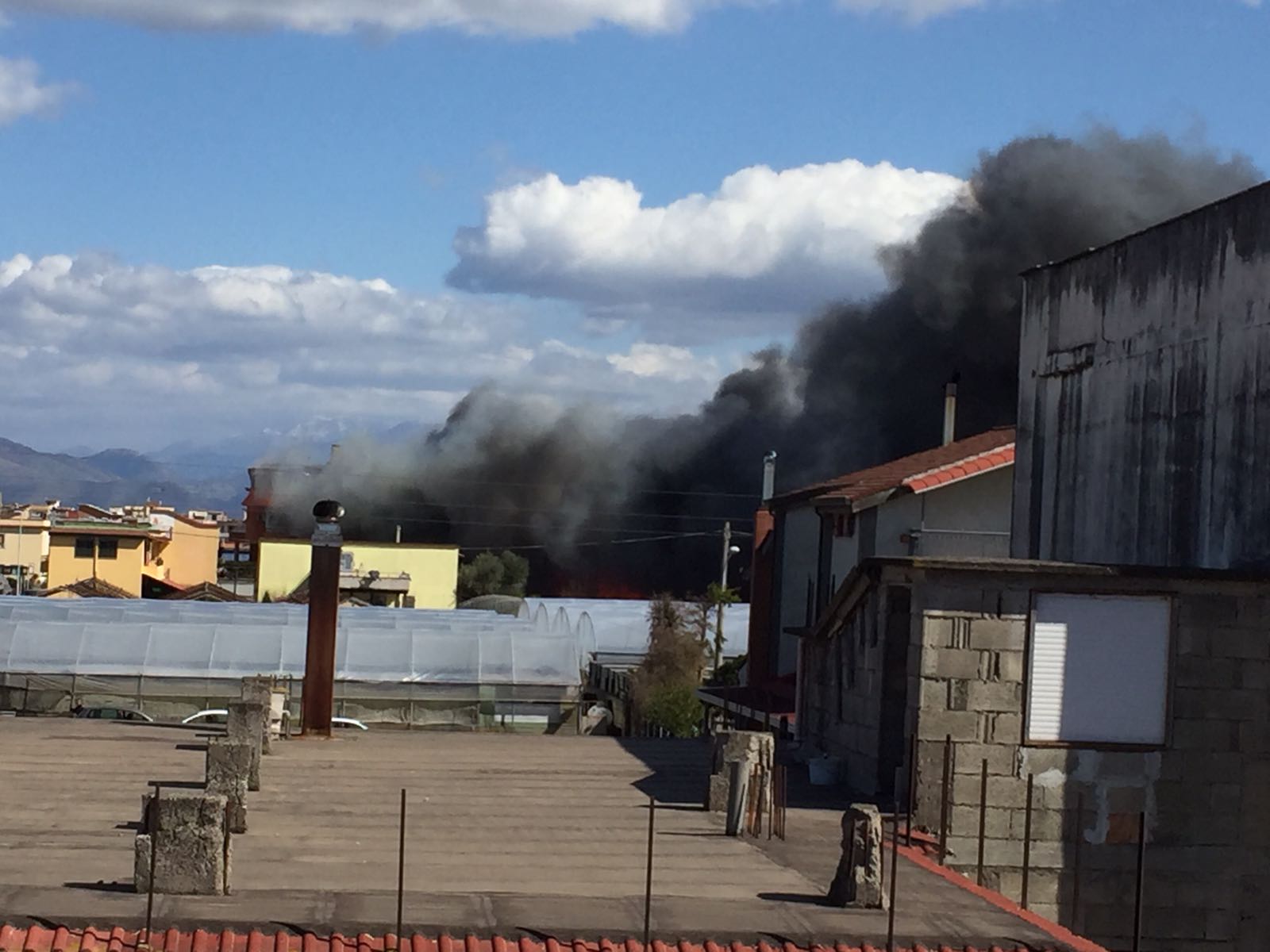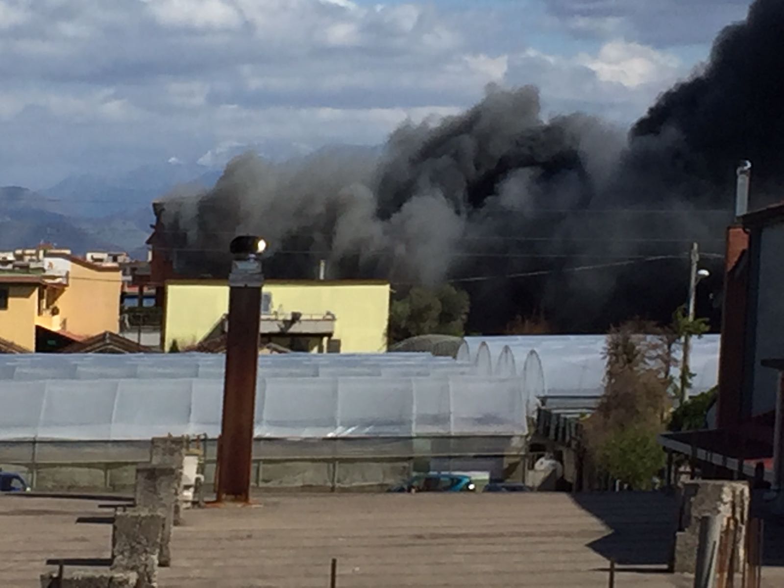 La colonna di fumo nero è visibile persino da Pompei e Torre Annunziata.