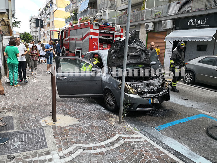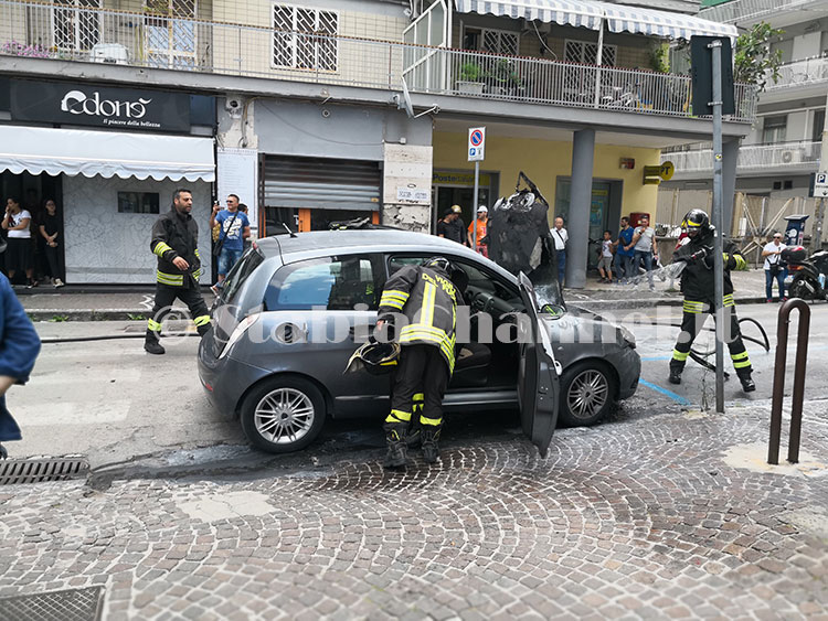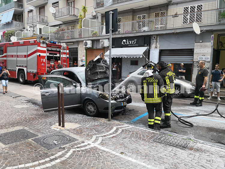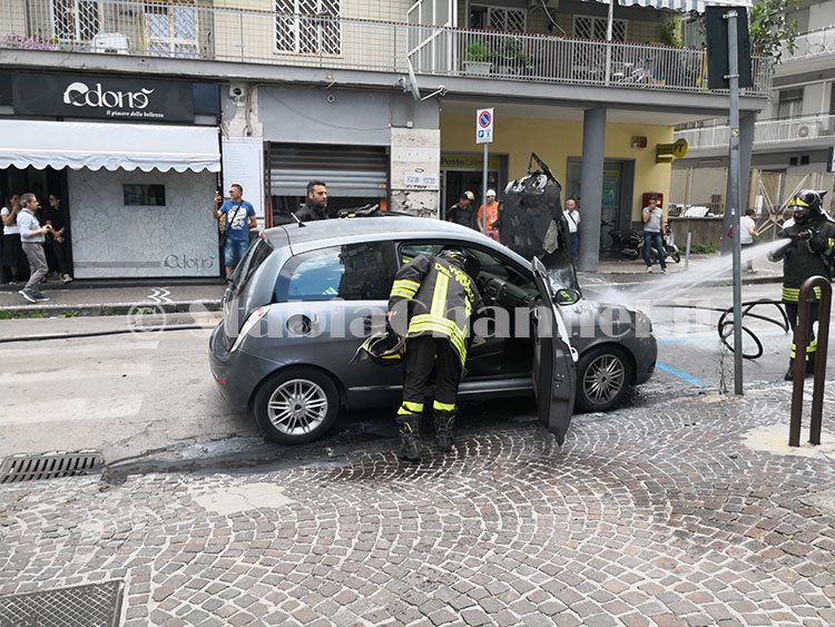 Probabile che a generare le fiamme sia stato un corto circuito nella zona anteriore dell’auto, dove è posizionato il motore.
