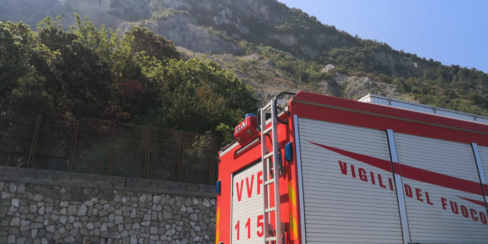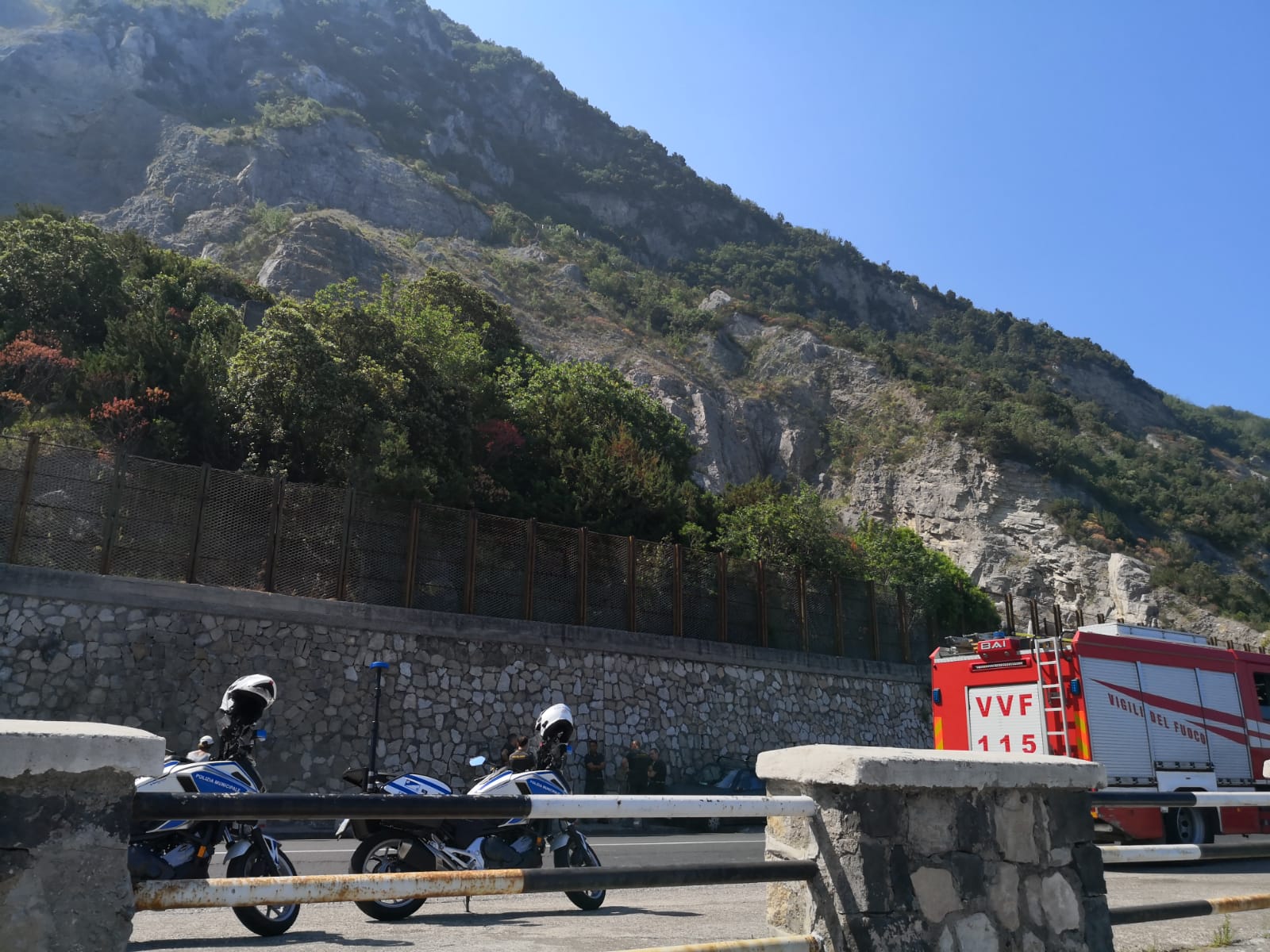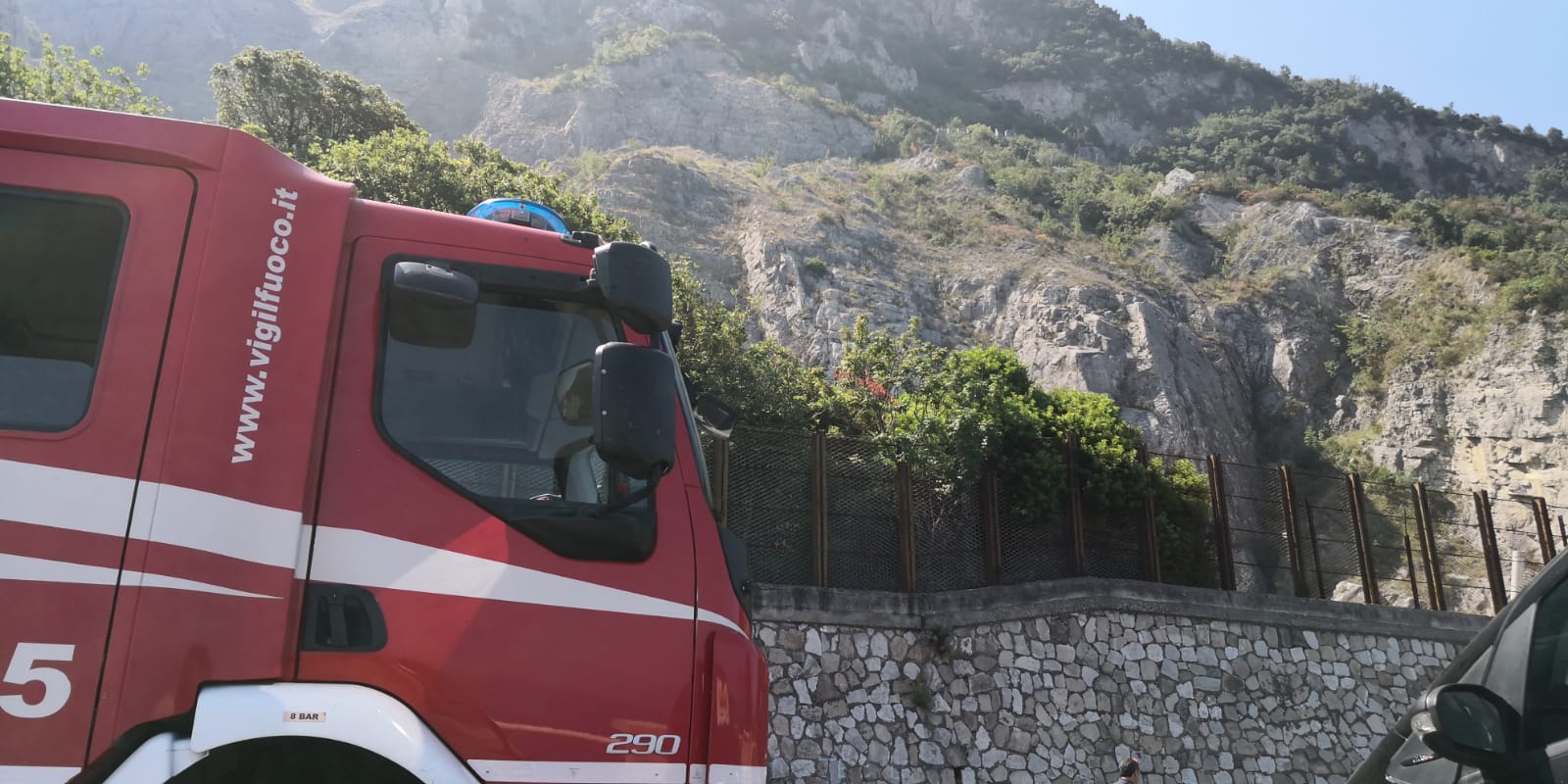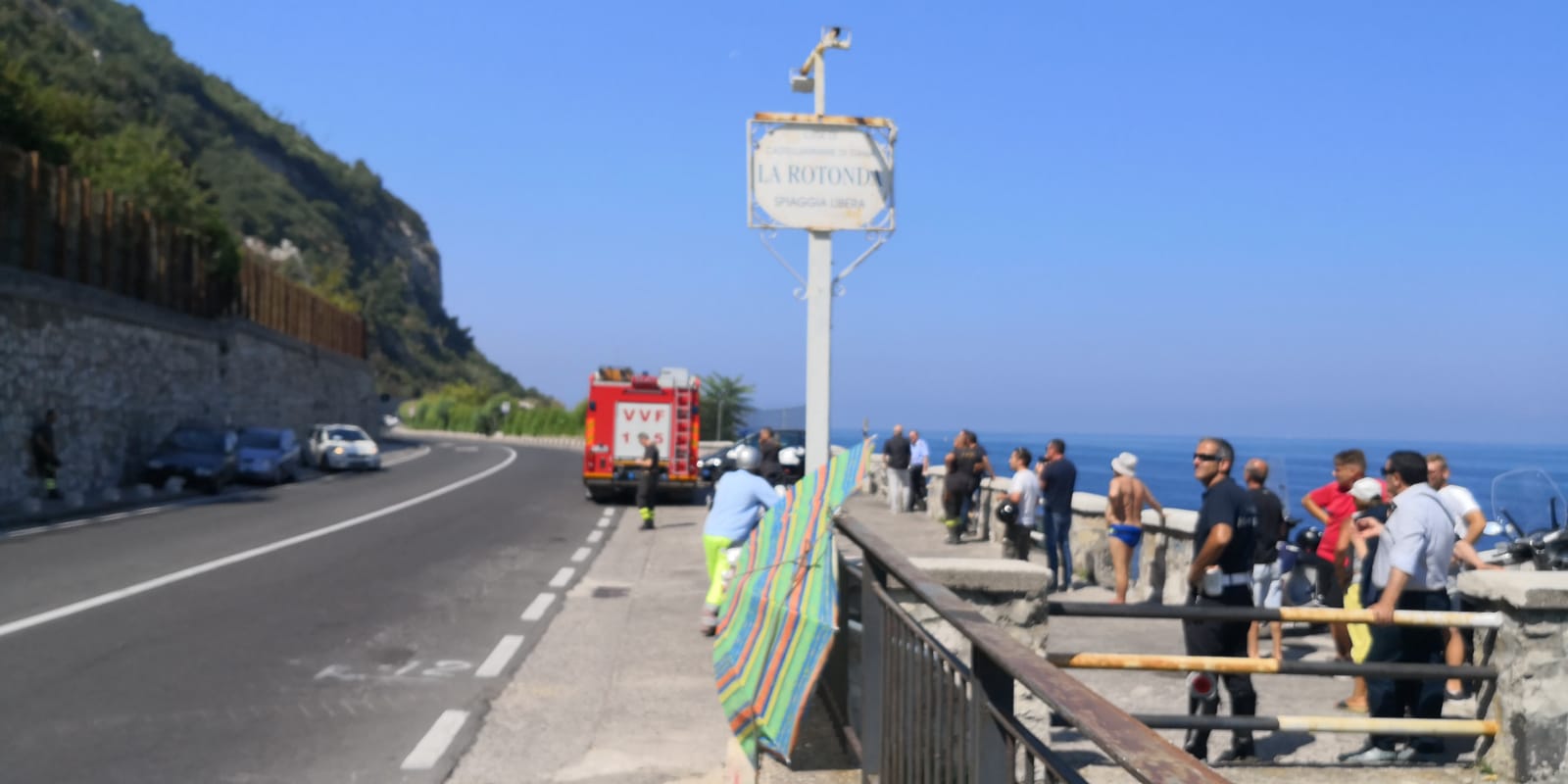 Si attende l'arrivo di un esperto. Strada interdetta dopo le segnalazioni degli automobilisti e dei bagnanti ma i massi non si sarebbero ancora staccati dal costone