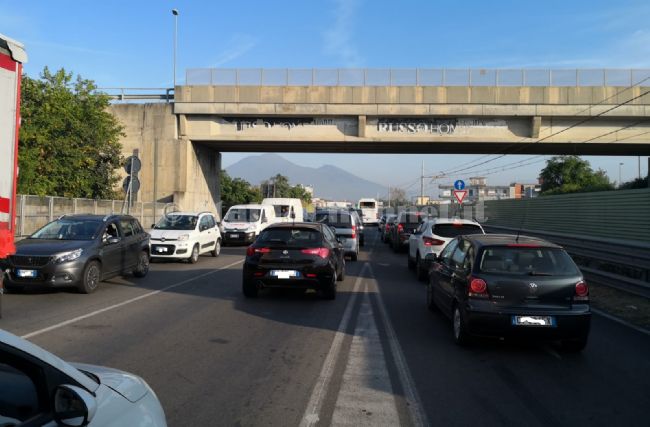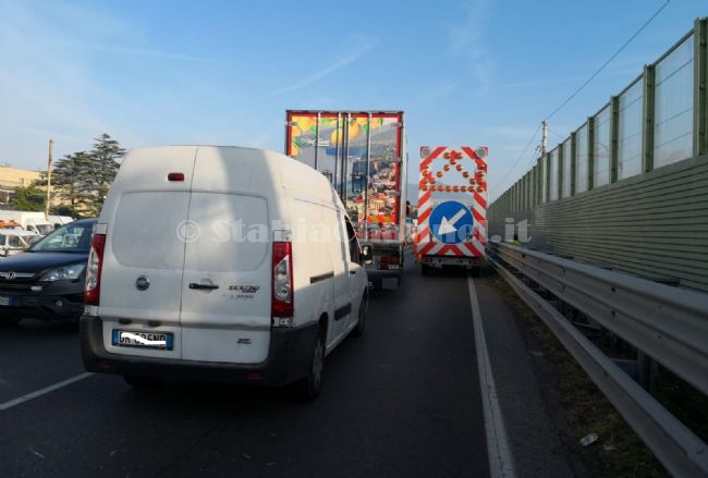 Oltre un'ora per percorrere 4 chilometri. E l'ANAS ci mette del suo con i lavori di scerbatura sulla ss145. Code di auto e camion fin sopra l'autostrada A3.