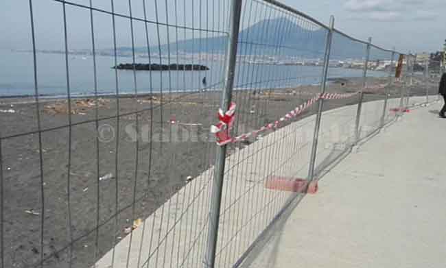 È stato chiuso per motivi di sicurezza un tratto del lungomare che conduce direttamente alla spiaggia. A causa dei temporali, si è venuto a creare un fossato pericoloso tra la villa e l'arenile.
