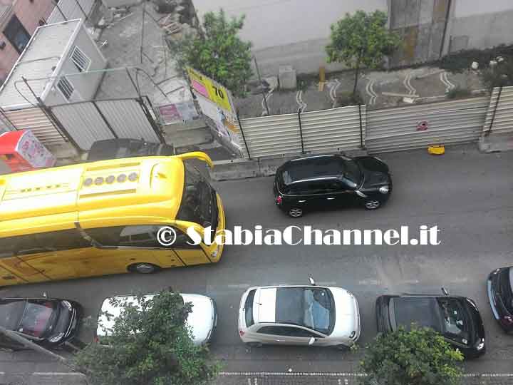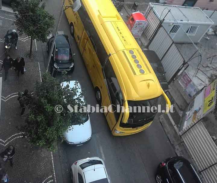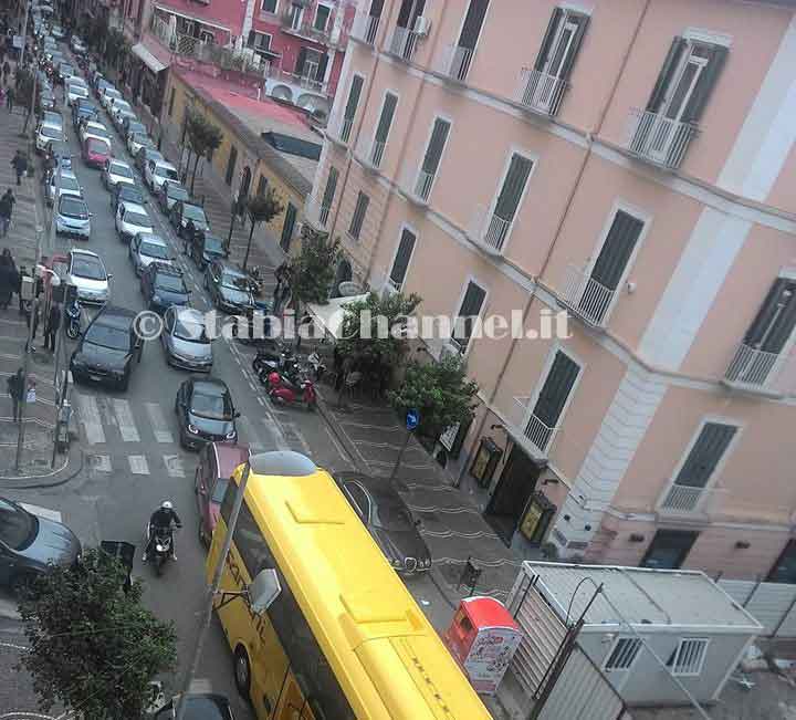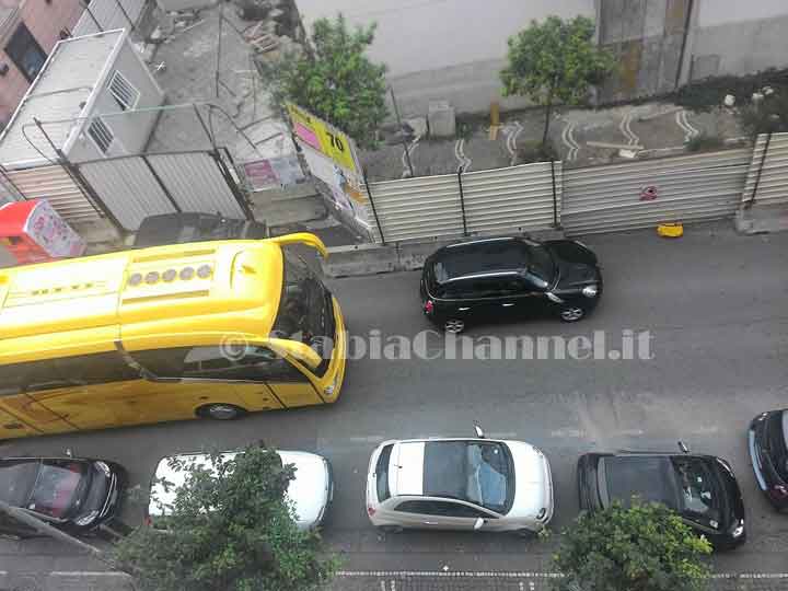 Un'auto in sosta vietata al corso Vittorio Emanuele blocca il passaggio di un autobus. Traffico paralizzato per circa un'ora.