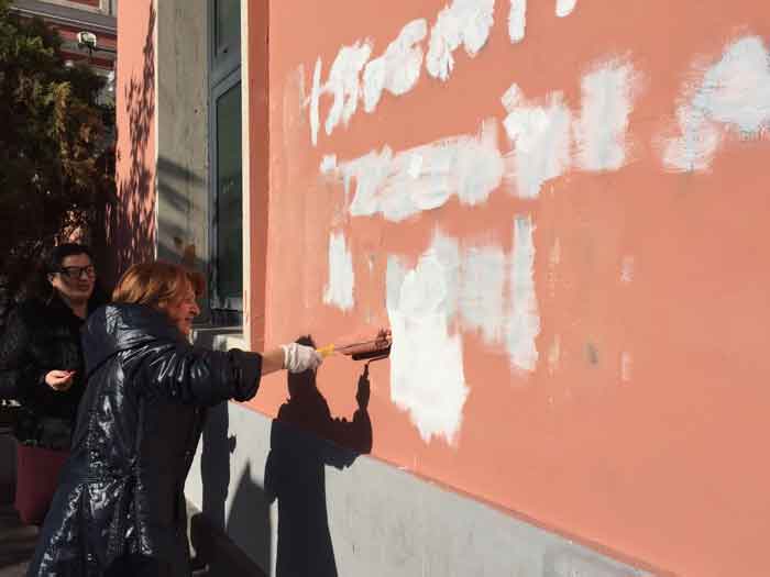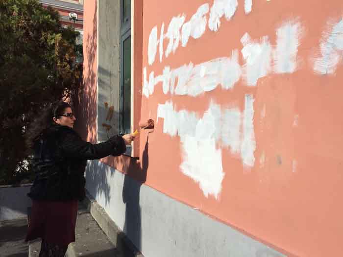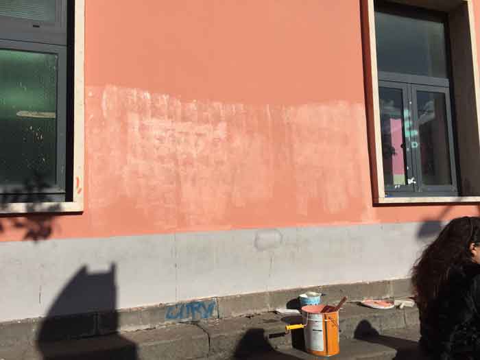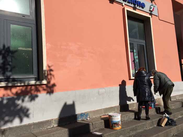 Armati di pennelli, rulli, carta vetrata e secchi di vernice. Anche così si combatte la camorra. L'esempio è stato dato questa mattina da un gruppo di volontari che ha ripulito la facciata della stazione della Ferrovia dello Stato a Castellammare di Stabia da una scritta offensiva della legalità.