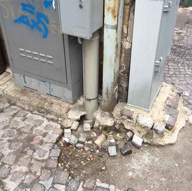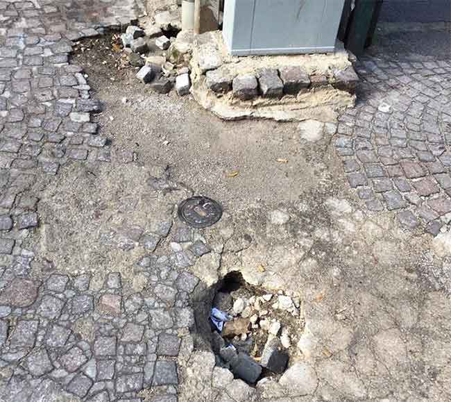 Dopo la stesura dei cavi la strada è un campo minato. Rischio per l'incolumità degli studenti. L'incredibile scenario che la mente di qualche "bravo" operaio è stata capace di realizzare.