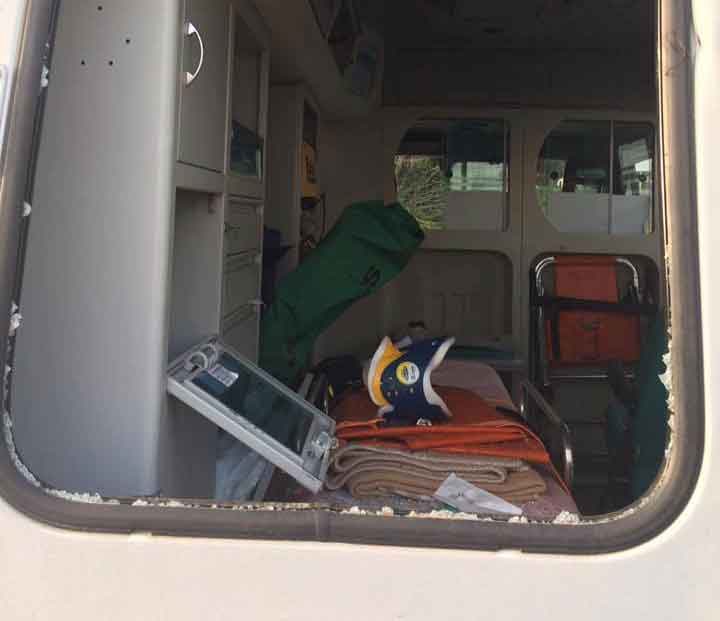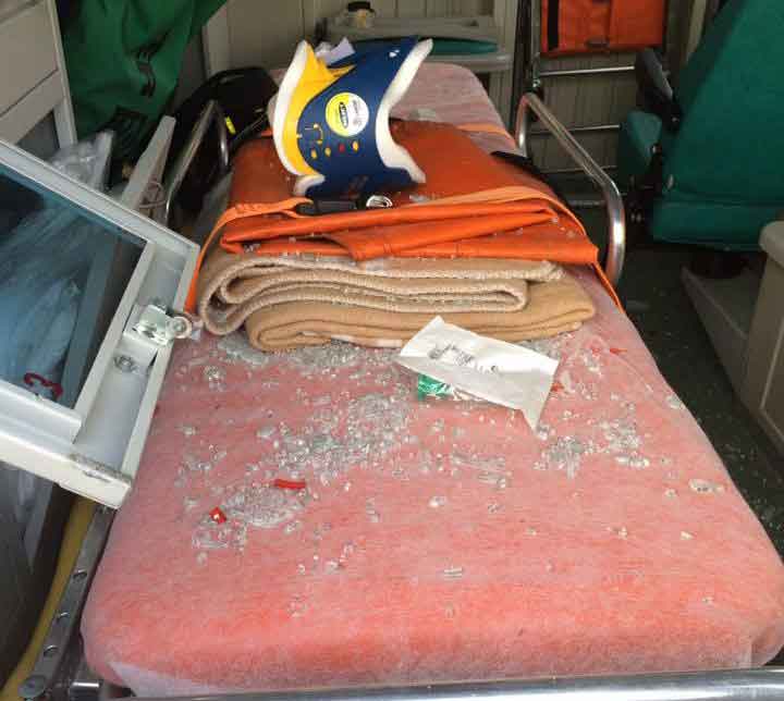 I teppisti hanno mandato in frantumi i finestrini di due ambulanze presso la sede situata nei locali delle Terme di Stabia, accanendosi anche contro altre due auto.