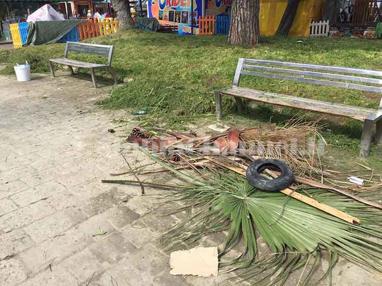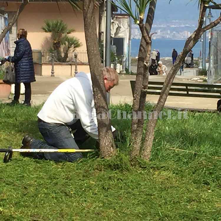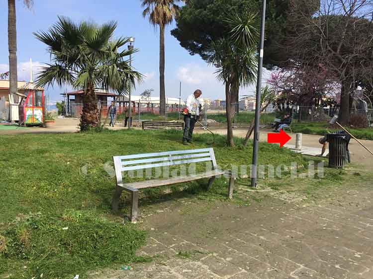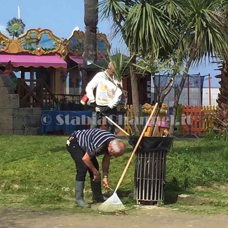 Alcuni cittadini ripuliscono le poche aiuole ancora accessibili.