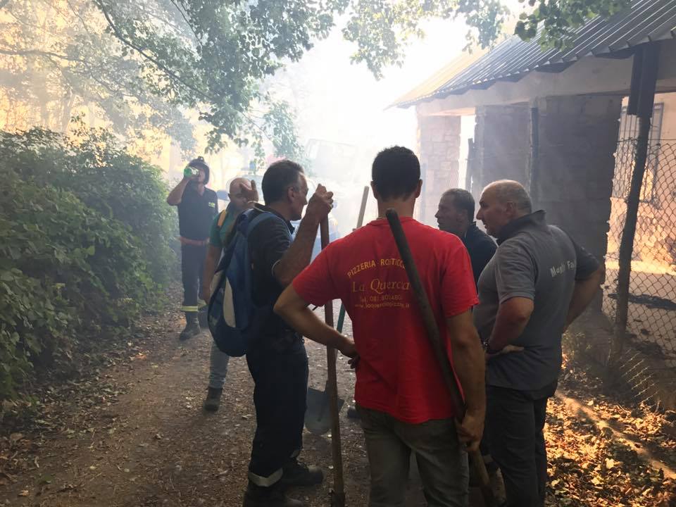 Paura per alcuni soccoritori rimasti intrappolati in un cerchio di fuoco.