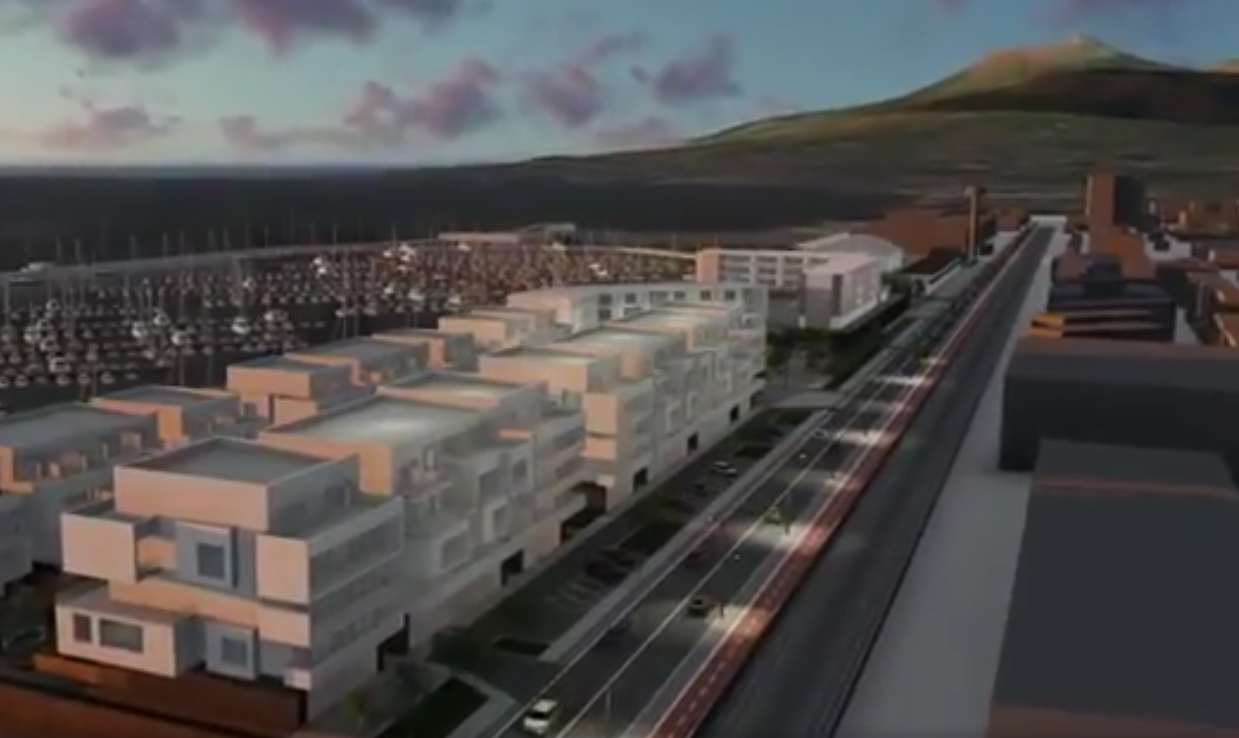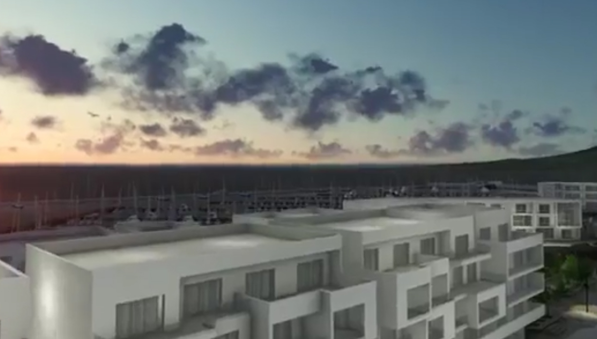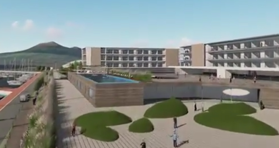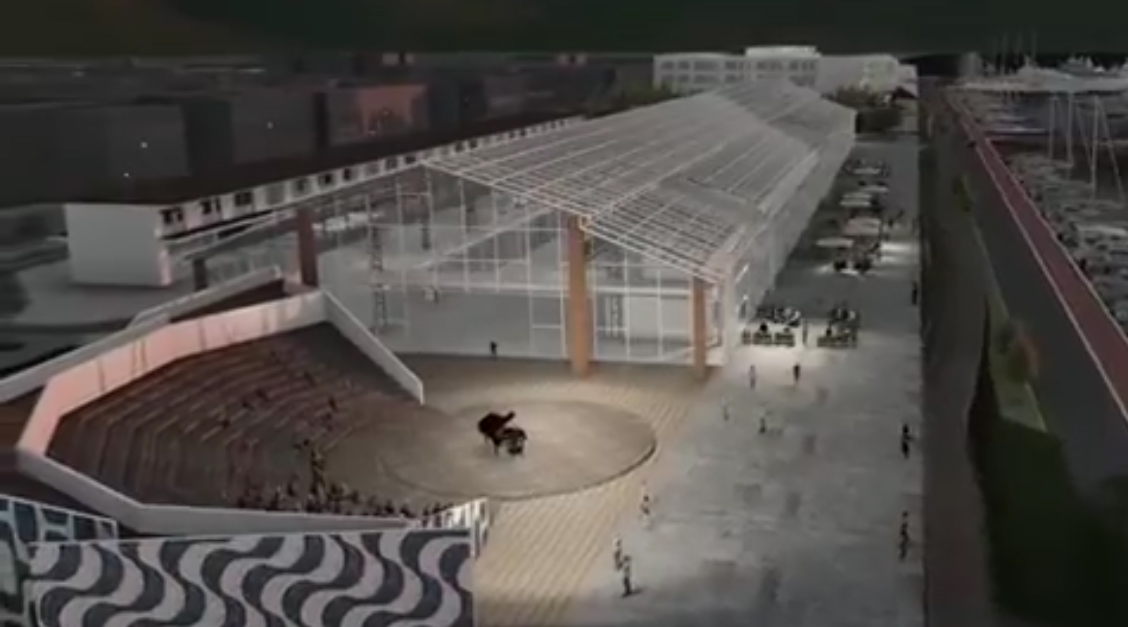Mercato del mare, complesso residenziale e albergo di lusso tra le opere a terra del progetto che, secondo il video pubblicato e poi sparito, dovrebbero essere realizzati a stretto giro. Le basi già poste nel 2018, poi il video sparisce dal web.