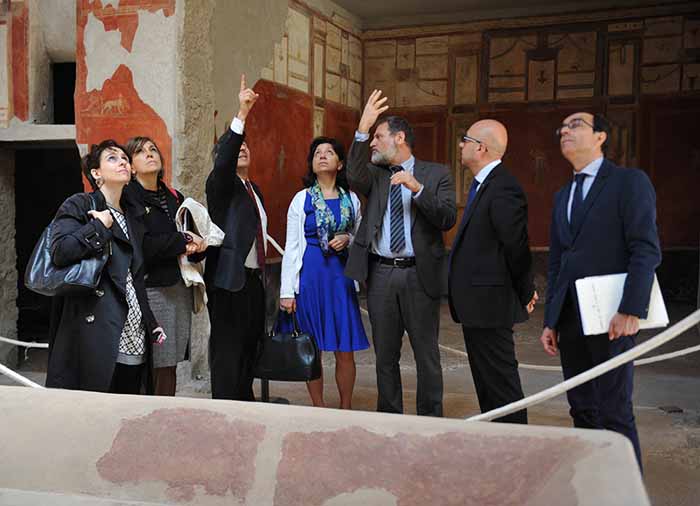 La visita all’area archeologica, seguita da una riunione tecnica, ha avuto l’obbiettivo di fare il punto sui lavori finora realizzati con il Grande Progetto Pompei.