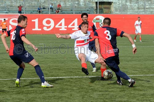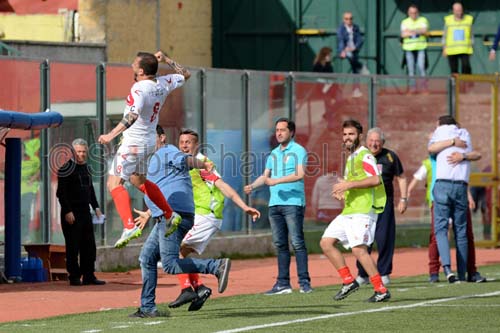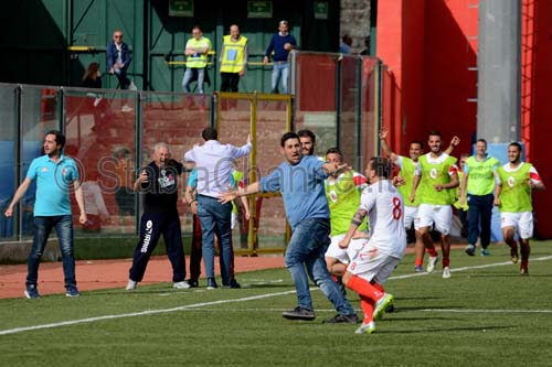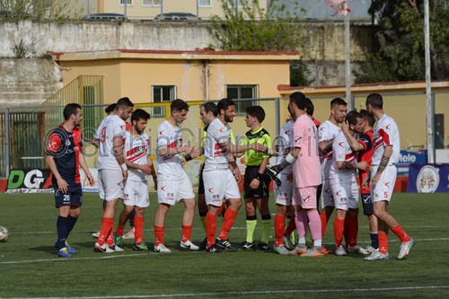 Padroni di casa raggiunti nel finale nonostante la superiorità numerica. Doppietta di Tiscione per gli ospiti. Manzi ed uno splendido Eurogol di Manzo per la Turris.