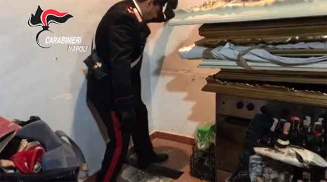 Un fucile mitragliatore da guerra carico e con 2 caricatori, cocaina, marijuana, sostanze da taglio e materiale per il confezionamento in dosi. Il tutto in un nascondiglio ricavato sotto la cantina da una coppia di coniugi ritenuta contigua al clan Gionta, nascondiglio al quale si accedeva attraverso una botola a scorrimento.